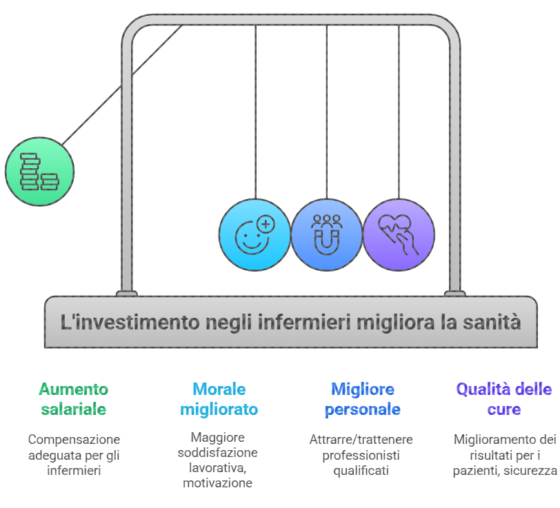 Prima di tutto, sarà fondamentale intervenire in maniera decisa sulle retribuzioni. Gli stipendi devono essere portati a livelli più dignitosi e competitivi, in linea con la media europea: parliamo di almeno 40.000–45.000 euro lordi annui per un infermiere. Una cifra che rifletta il livello di responsabilità, il rischio professionale, la formazione continua e l’impegno quotidiano richiesti.