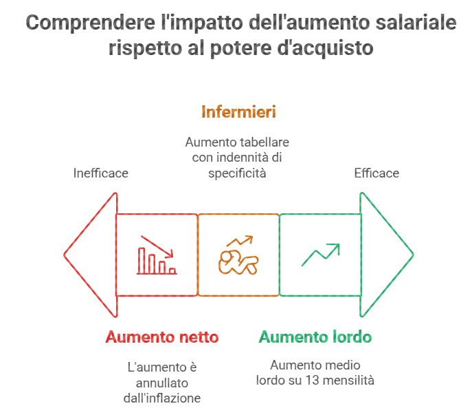 - Per il personale infermieristico, l’aumento si compone di circa 135 € di incremento tabellare, 15 € di indennità di specificità, a cui si aggiungono 7,94 € da gennaio 2024 e ulteriori 7,06 € da gennaio 2025.